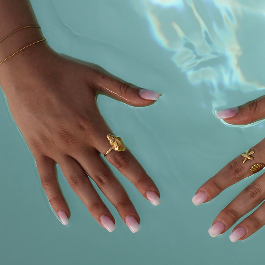Tauche ein in die geheimnisvolle Welt unter den Wellen mit der „Flüstern des Ozeans“-Kollektion. Inspiriert von den verborgenen Schätzen des Meeres, verbindet diese edle Serie aus goldenen Schmuckstücken die Schönheit maritimer Elemente wie Muscheln, Seesternen und sanften Wellenformen. Jedes Stück ist kunstvoll gestaltet, um die flüsternde Essenz des Meeres einzufangen, veredelt durch das warme Glühen des feinsten Goldes.