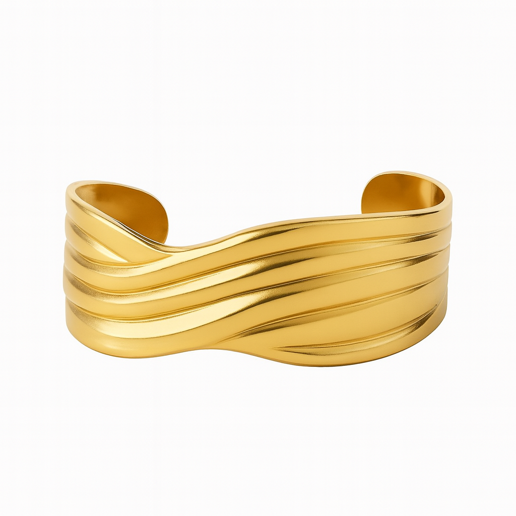 Wie sanft gelegter Stoff – in Gold verewigt. Der Armreif Avvolgere bringt die Anmut von fließenden Wicklungen an dein Handgelenk. Weich im Design, kraftvoll in der Wirkung. Ein Schmuckstück, das sich mühelos in deinen Alltag einfügt und doch immer ein Statement bleibt.