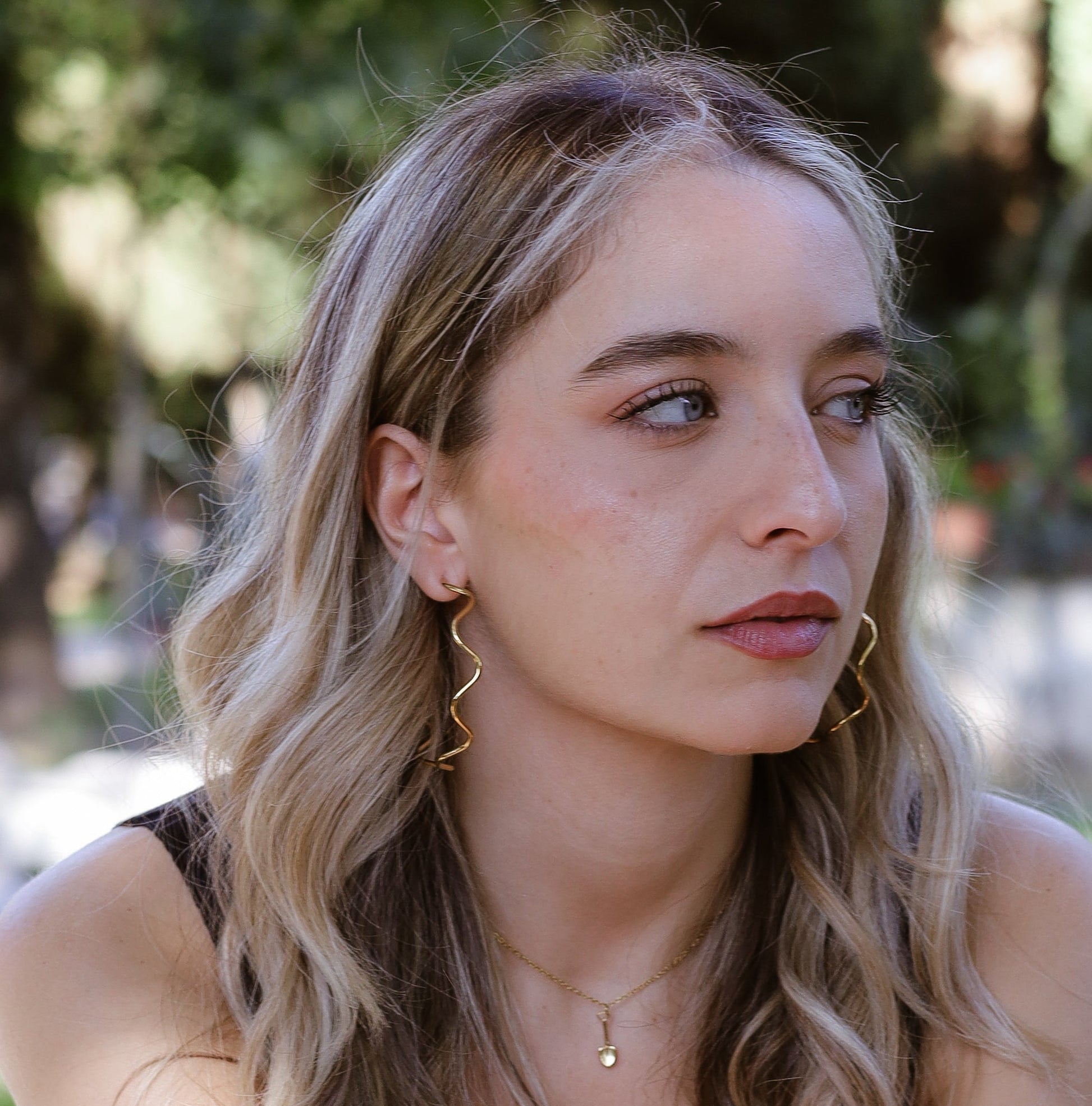 Die Onda Kreolen bringen Bewegung und Eleganz in jeden Look. Ihr wellenförmiges Design erinnert an fließende Linien – modern, klar und zeitlos. Gefertigt aus wasserfestem Edelstahl mit 18k Vergoldung begleiten sie dich im Alltag ebenso zuverlässig wie auf Reisen oder beim Ausgehen.