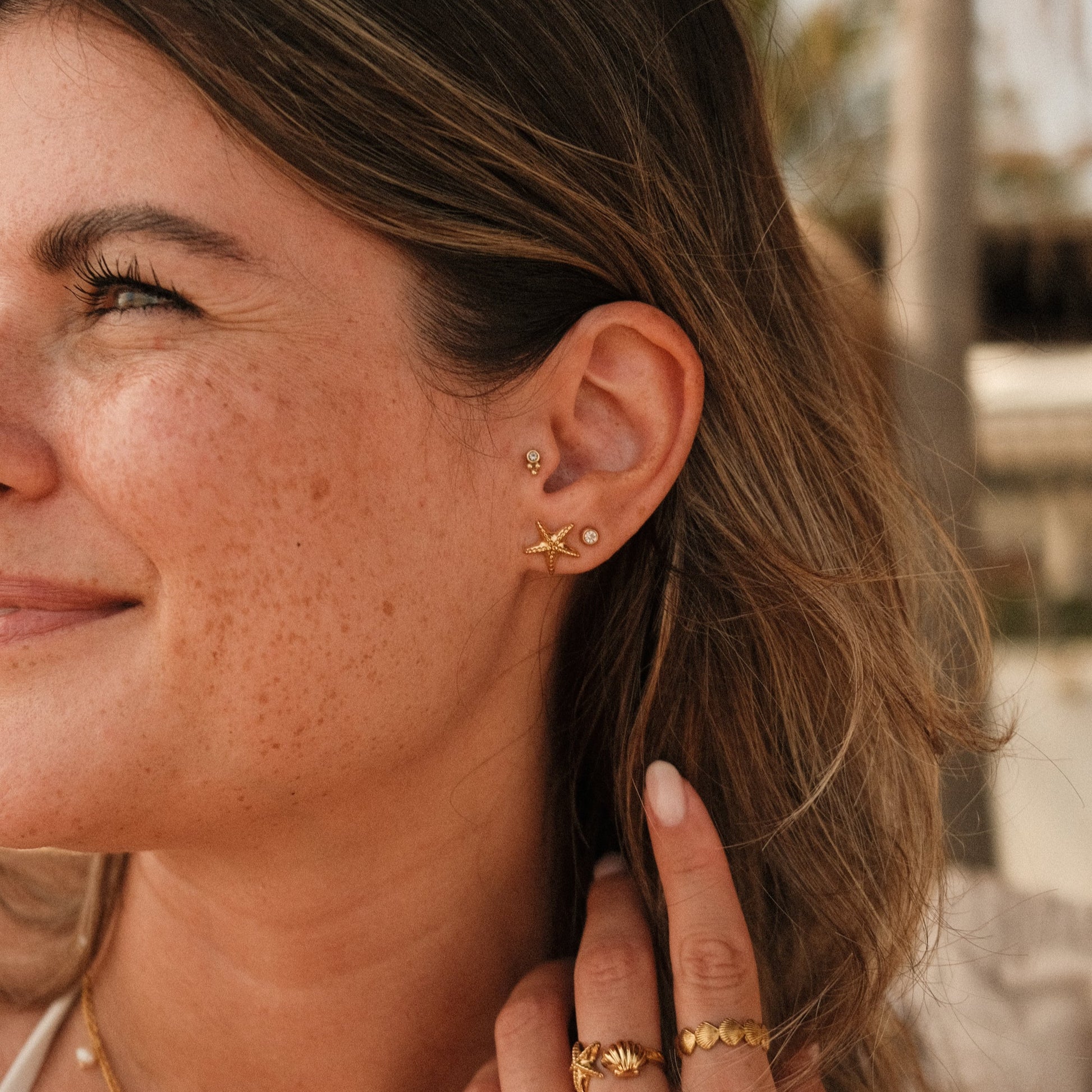 Für Frauen, die Sommer auf der Haut spüren möchten – egal ob am Meer oder in der Stadt. Ein Ohrschmuck für Sonnenanbeterinnen, Freigeister und alle, die sich nach Leichtigkeit sehnen.
