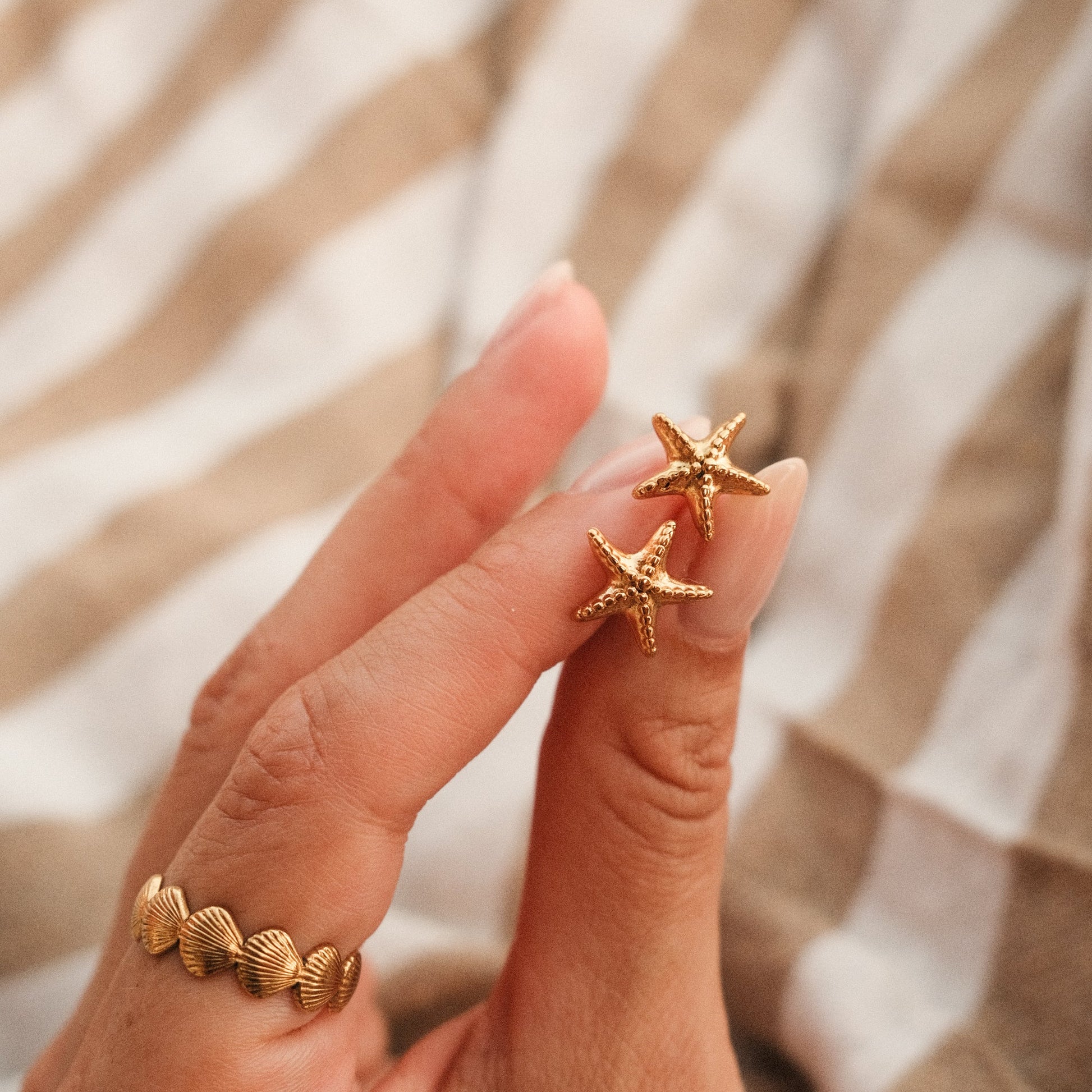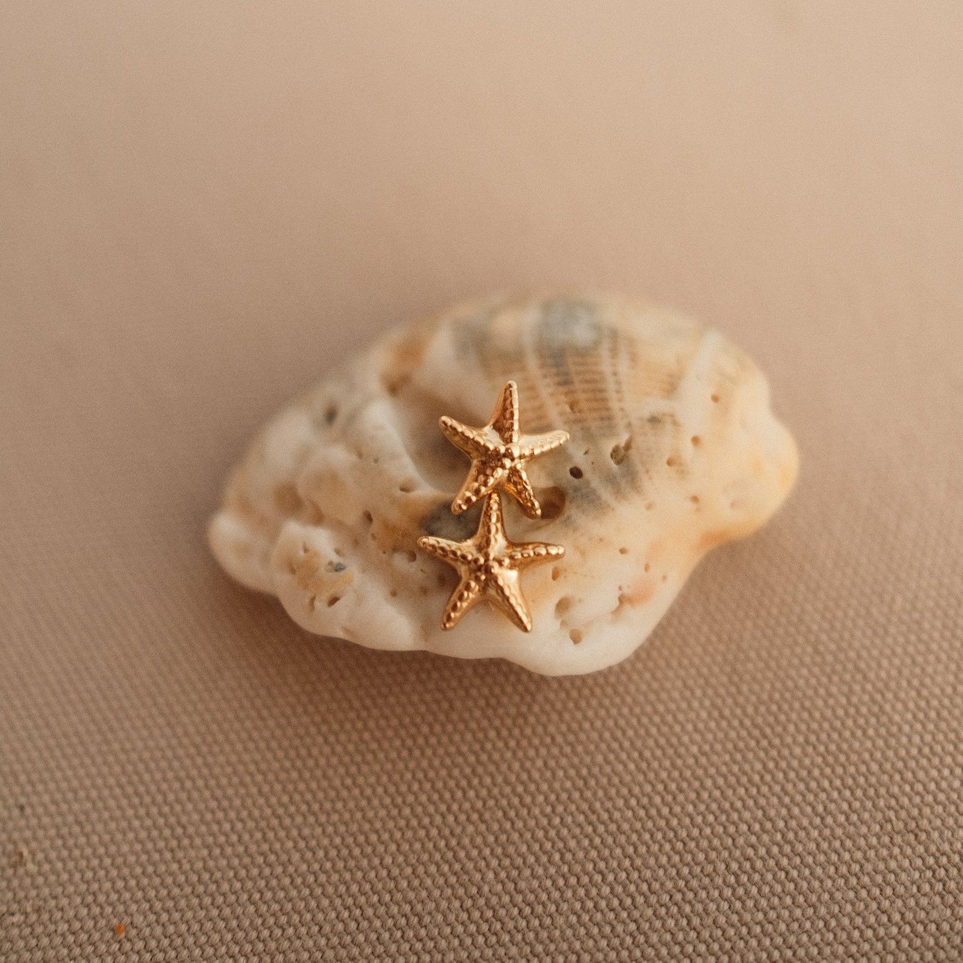 Zwei kleine Seesterne, die wie Sonnenstrahlen am Ohr funkeln – die Stella Marina Ohrstecker sind ein Statement für Leichtigkeit und Sommer. Ihr feines Relief fängt das Licht ein und erinnert an salzige Haut, warme Strandtage und den Zauber des Meeres.