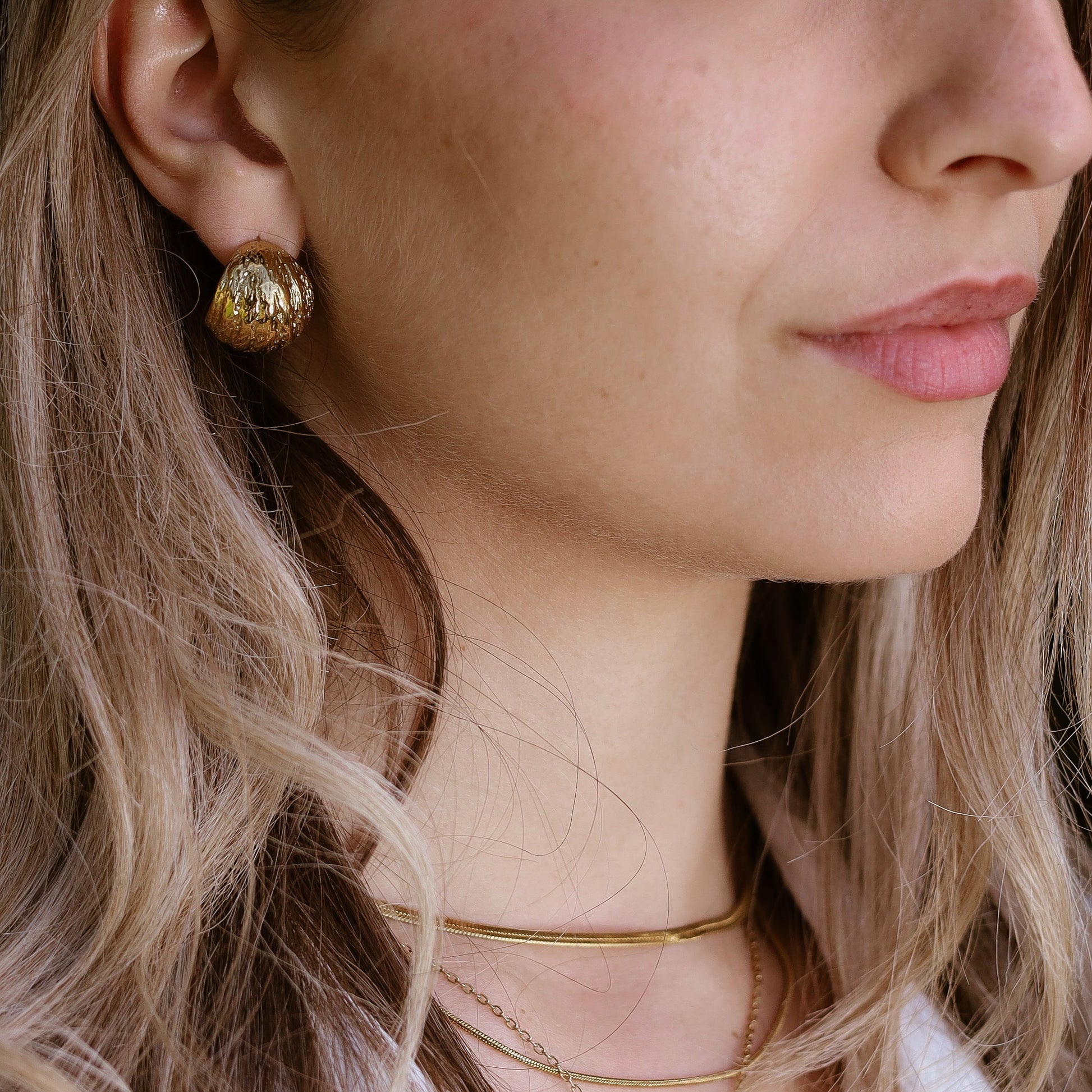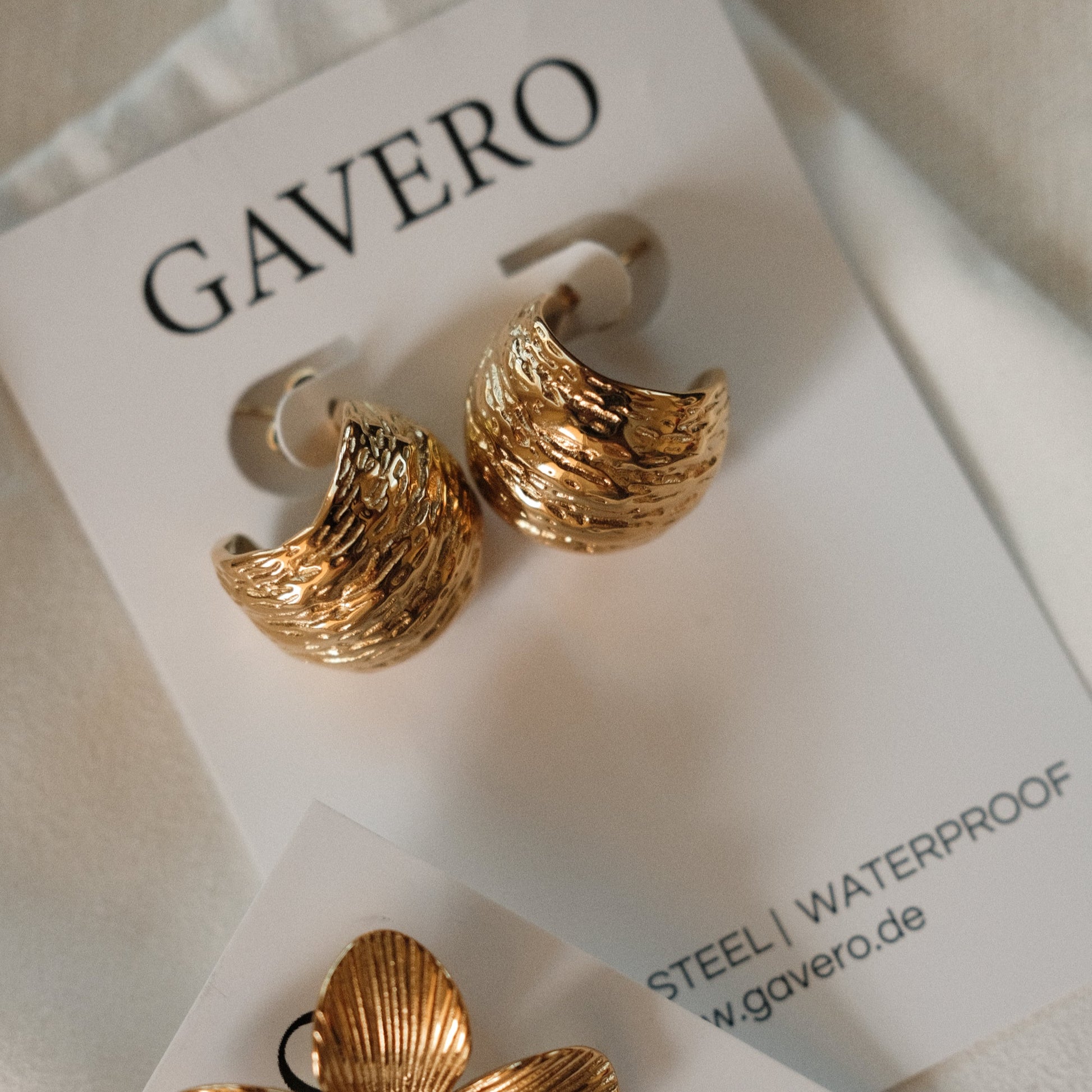 Wie das Spiel der Gezeiten – kraftvoll, organisch und voller Leichtigkeit. Die Tide Ohrringe vereinen Struktur und Glanz zu einem Design, das wirkt wie vom Meer geformt: modern, selbstbewusst, sommerlich.